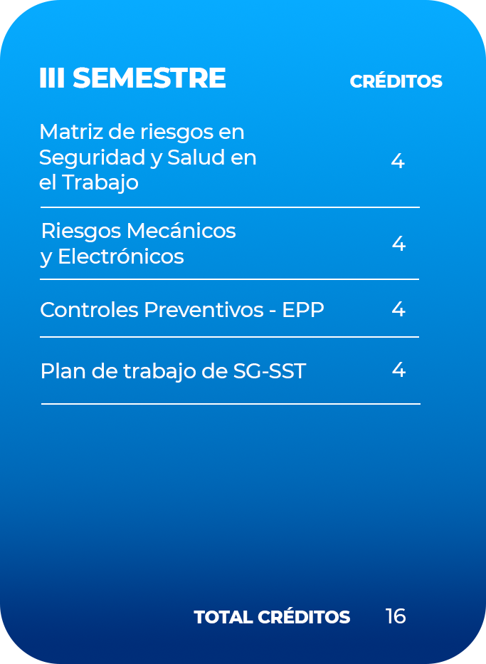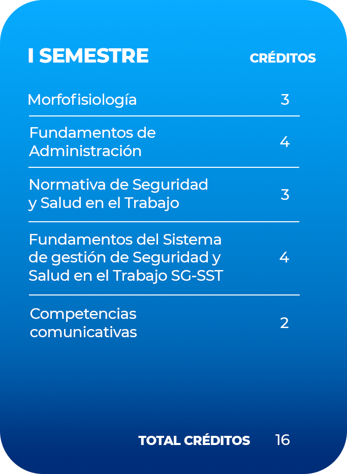 Título que otorga: Técnico Profesional en Procesos de Seguridad y Salud en el Trabajo Duración: 4 semestres Modalidad: Presencial Créditos: 65 Ubicación: Bogotá D.C. Resolución N.º 002442 de 13/02/2025 |